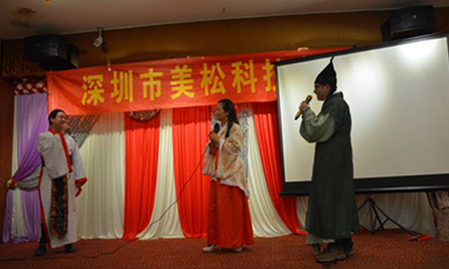 晚會節(jié)目精彩紛呈,高潮迭起,節(jié)目編排有張有弛,料點十足。在晚會節(jié)目進入尾聲時,2位來自俄羅斯的外國朋友—美松國外合作伙伴,也上臺給大家?guī)須g樂。他們用俄語為我們熱情高歌。俄語,雖然很多人聽不懂,但是我們美松人用打拍子的方式協(xié)同這位國外朋友獻(xiàn)出自己的熱情。最后用他們的表達(dá)方式祝愿美松走向更美好的未來,同時也期盼彼此之間有更多的合作。其實,合作是必然的,我們美松科技的產(chǎn)品早已售往全國,遠(yuǎn)銷海外,相信在未來的日子里也會走得更順暢,為更多的客戶獻(xiàn)上更優(yōu)質(zhì)的產(chǎn)品。