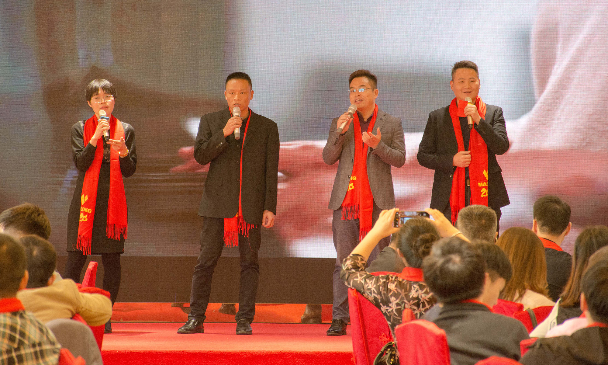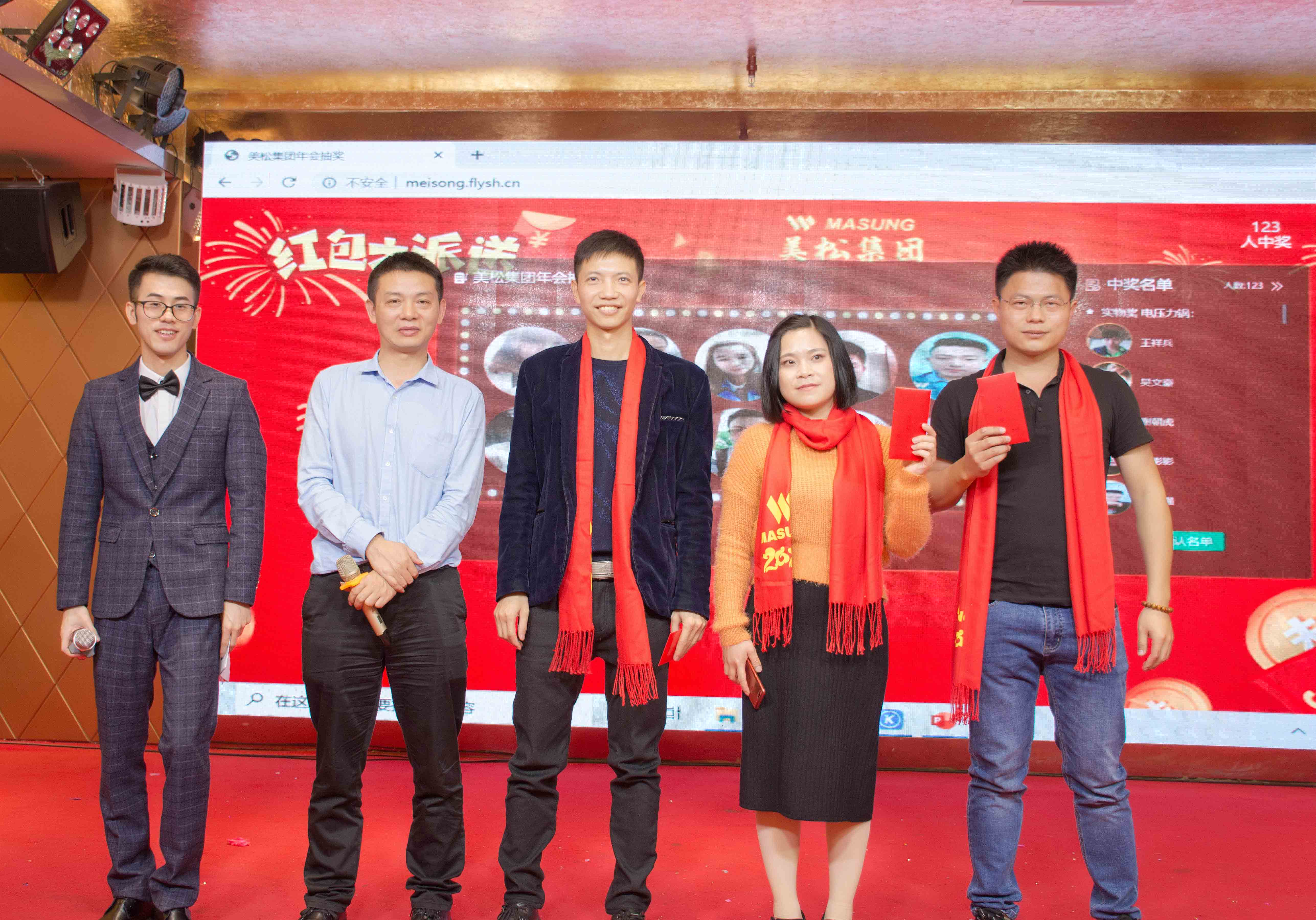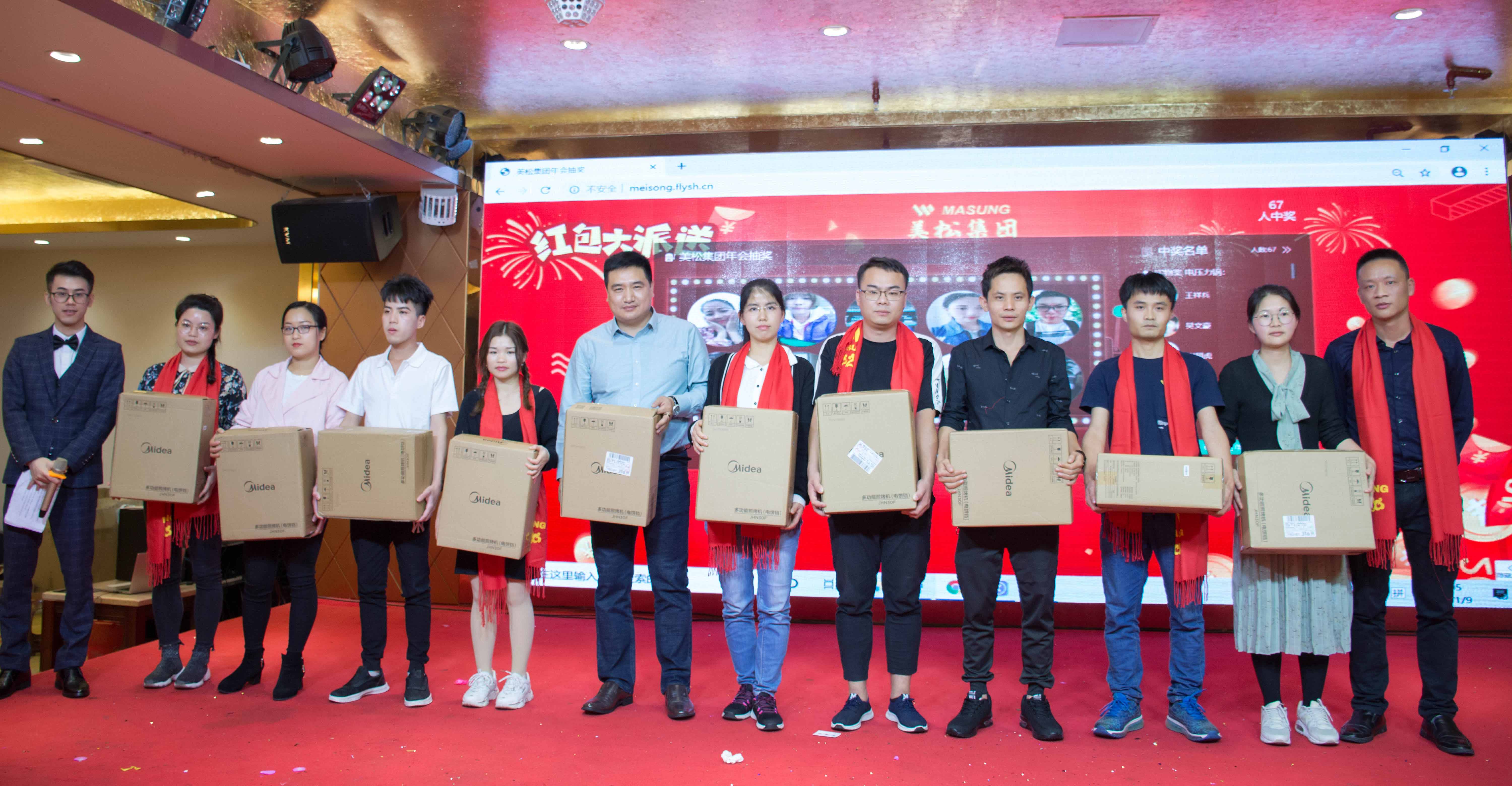 晚宴期間,相互舉杯、互道祝福、開懷暢飲,現(xiàn)場氣氛異常熱烈,這怎么能少了幸運(yùn)大抽獎(jiǎng)環(huán)節(jié)?現(xiàn)金獎(jiǎng)、實(shí)物獎(jiǎng)交替進(jìn)行,瞧!一張張笑臉上告訴著我們,他們有多幸運(yùn),也希望能把這份幸運(yùn)傳遞給身邊的每個(gè)人!本次年度盛典大會期間也迎來了老朋友: 深圳市馳卡技術(shù)有限公司總經(jīng)理薛明明先生及其團(tuán)隊(duì) 、東莞市立派五金有限公司總經(jīng)理嚴(yán)新俊先生、東莞市飛鷹五金模具有限公司總經(jīng)理鄧永平先生、深圳市深一創(chuàng)科技有限公司總經(jīng)理杜勇先生及鄂州商會成員(排名不分先后),感謝他們一直以來對美松集團(tuán)的支持與信任,正是因?yàn)橛辛怂麄儯覀儾庞袩o窮的力量一路披荊斬棘!