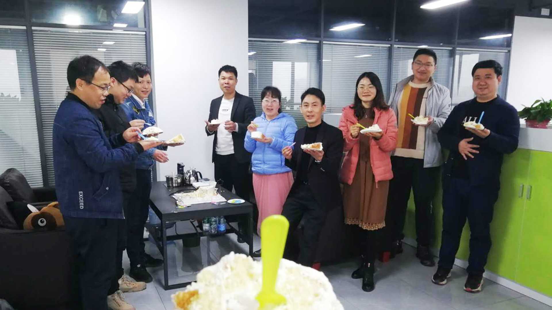 美好的時光總是短暫的,但心中記憶卻是永恒的。在今天這個特殊而又富有意義的日子,同事們彼此分享蛋糕的同時,用笑容傳遞出的青春味道,甜蜜而美好!也為一整天的辛勤工作悄然劃上一個喜悅而又圓滿的句號!