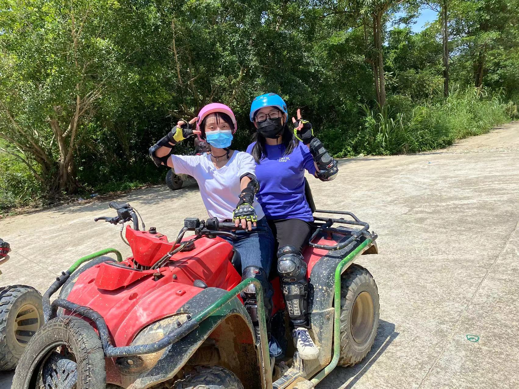 開著超酷的越野山地車馳騁在山林中,穿越山林光影,仿佛誤入童話世界,陽光透過樹葉澆到這一張張自信而陽光的臉龐,格外耀眼。雖然有幾個小伙伴成了小泥人,但是大家都像個孩子似的樂開了花,初嘗泥土的滋味,更是回到了童年時光。