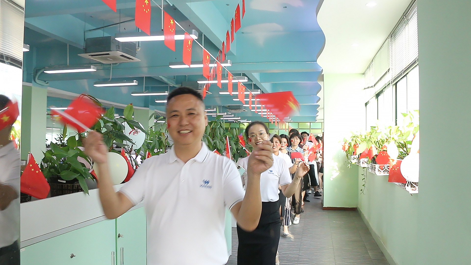 市場部主持人陳海蘭的開場祝福,愿山河無恙,祖國萬歲,祝祖國母親生日快樂!同時也為美松的壽星陳董送上最真摯的祝福!陳董現(xiàn)場表示感恩也發(fā)表了重要感言:感謝我們的祖國,生于您懷并成長,愿祖國國運昌盛,福運連綿!創(chuàng)業(yè)以來感謝所有美松人為公司發(fā)展所作貢獻,我們向前走的同時不能忘記曾經(jīng)走過的路,美松人務必將傳承紅色基因,肩負“專業(yè)、創(chuàng)新、誠信、服務”的初心使命,以更加昂揚的姿態(tài),向前闊步邁進。最后再次祝我們的祖國生日快樂,祝大家幸福健康、萬事順遂!