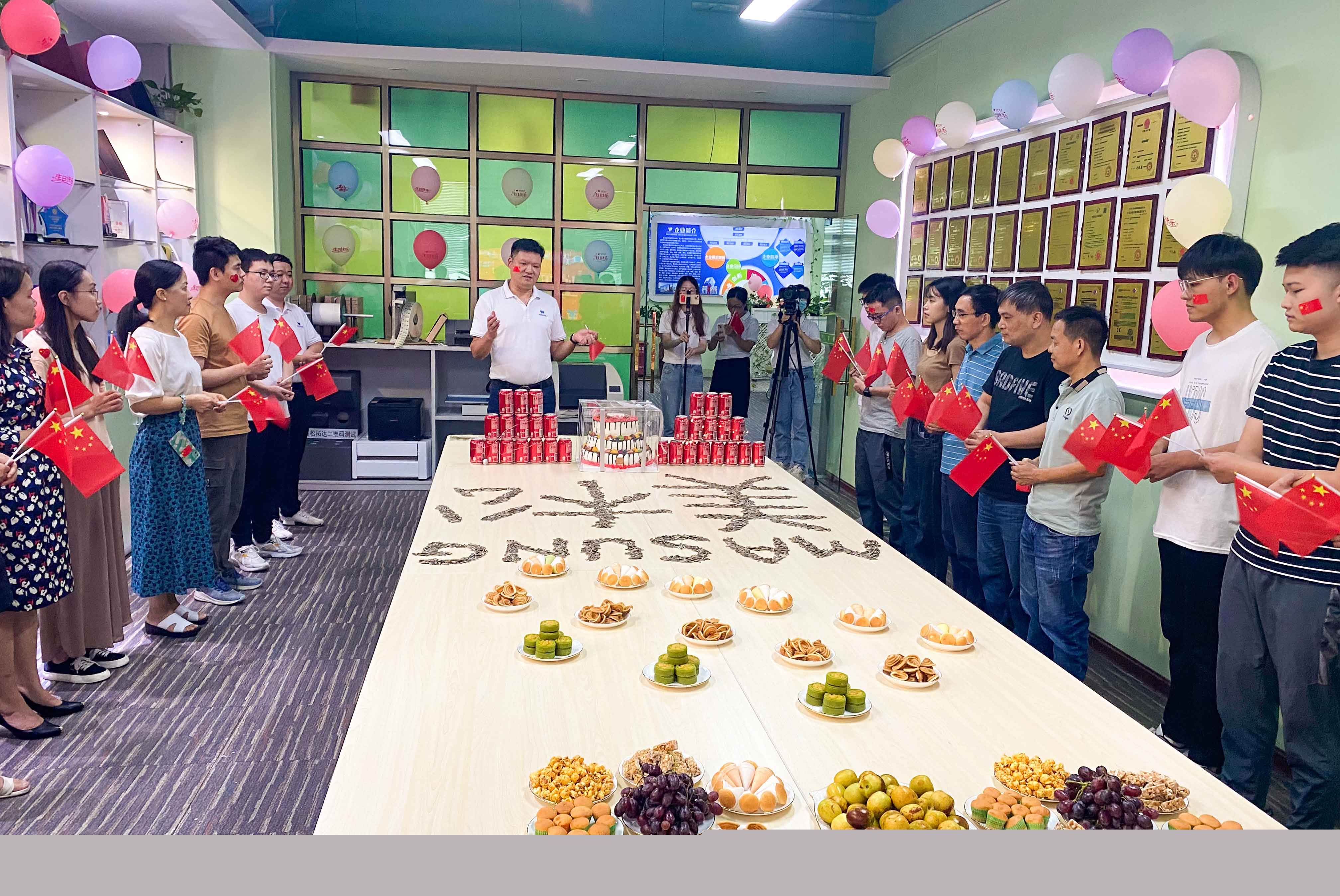 下午3點半,伴隨著現(xiàn)場優(yōu)美歡快的生日歌聲,同事們排起長隊,人手一面紅旗,個個洋溢著歡快的笑容,列隊大步邁向慶祝會場,頓時,辦公室成了紅色的海洋,同時我們的慶祝會正式拉開帷幕。