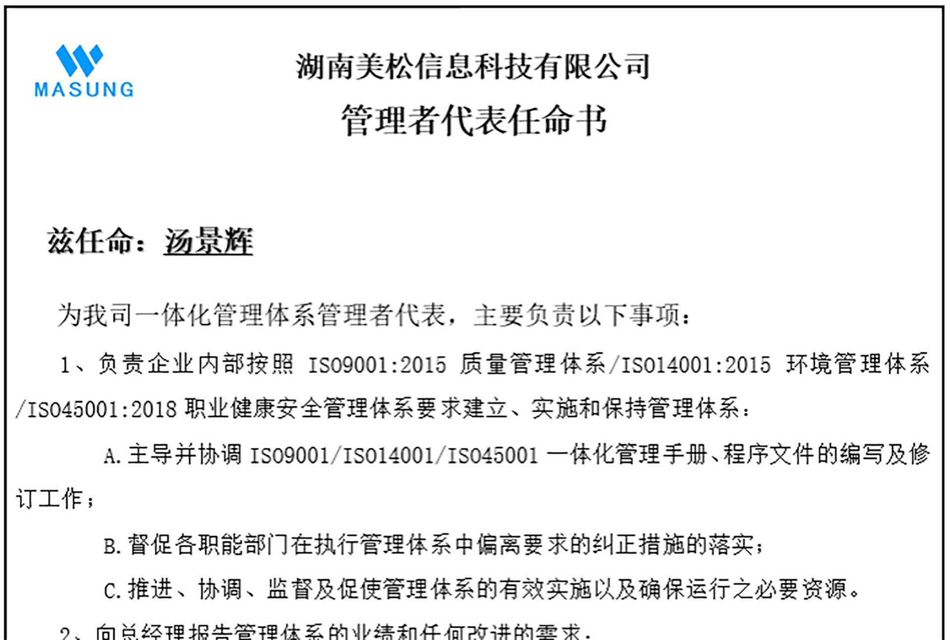 總經(jīng)辦董事長助理Coco代表公司,正式授予制程工程部湯景輝同志“管理者代表”任命書。也表達(dá)了對湯景輝的充分信任和厚望,希望他能帶領(lǐng)大家把體系管理工作做得扎實(shí)又創(chuàng)新。并向所有部門管理人員發(fā)出號召:以體系管理為抓手,優(yōu)化流程、提升品質(zhì)、降低風(fēng)險,把企業(yè)打造得更加安全卓越!