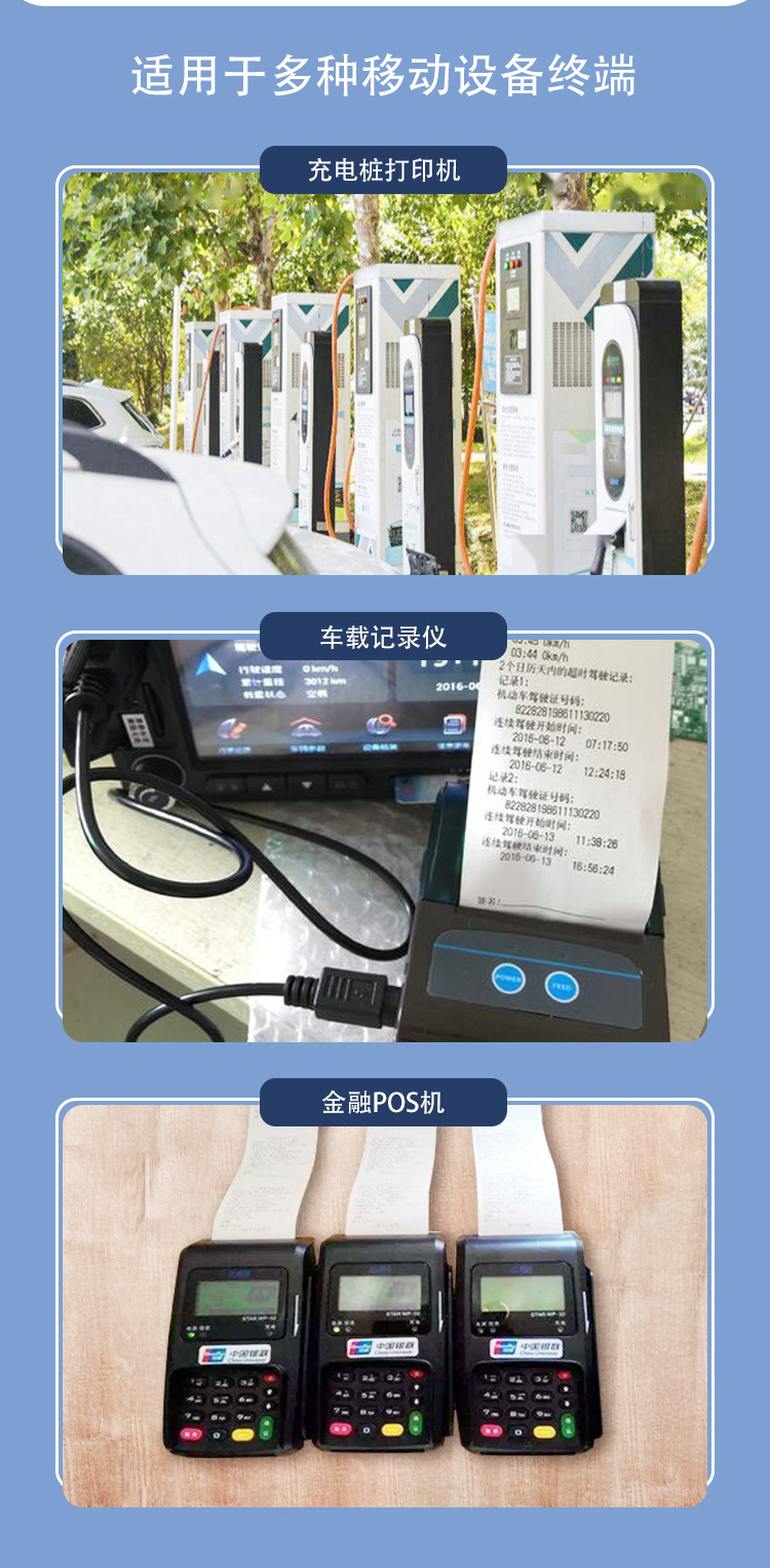 微型打印機(jī)特點(diǎn):前開(kāi)蓋維護(hù),無(wú)需拆開(kāi)終端設(shè)備就可實(shí)現(xiàn)換紙和維護(hù),5V低電壓供電58mm打印機(jī),嵌入體積小巧