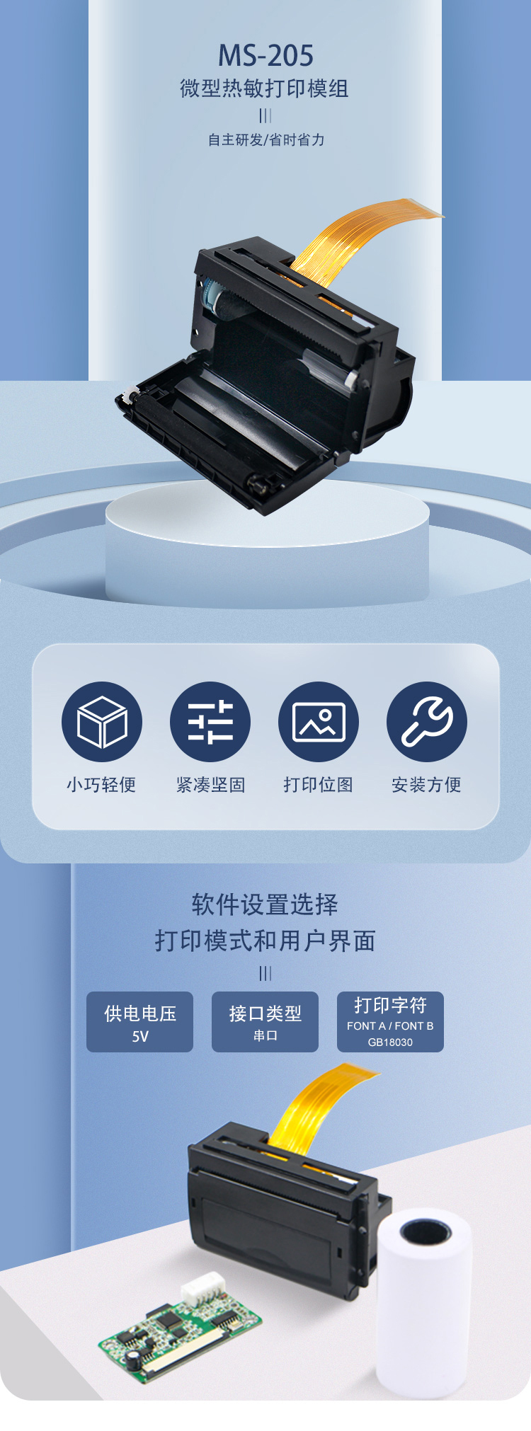 MS-205打印模塊是一種新型行式熱敏打印機(jī)模組,它具有打印速度快、噪聲低、可靠性強(qiáng)、打印質(zhì)量高、安裝方便、結(jié)構(gòu)小巧等特點(diǎn),免除日常維護(hù)的煩惱。