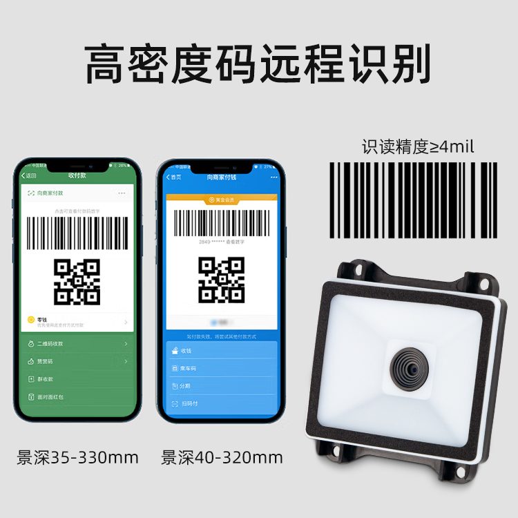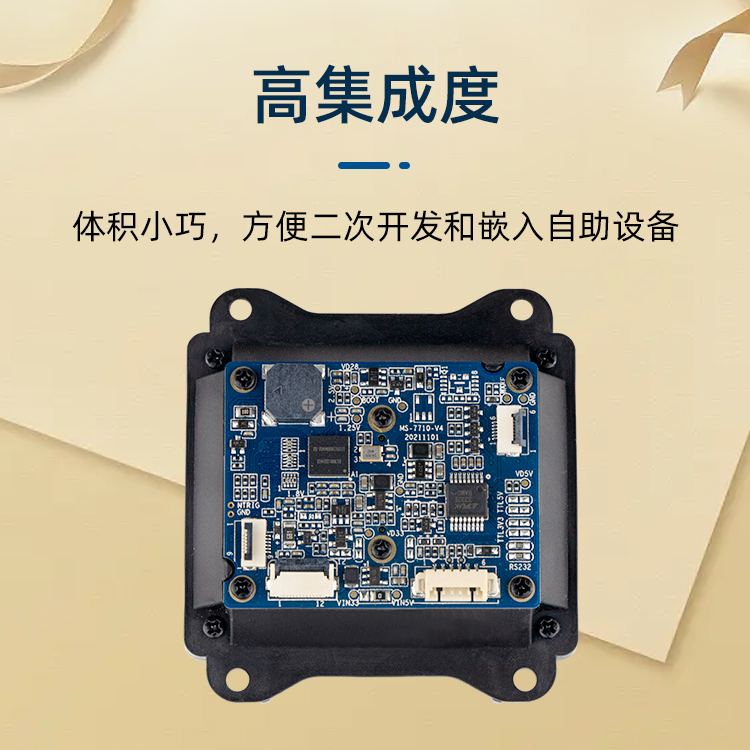 美松二維碼掃描模塊MS-7710采用遠距離圖像傳感器,支持遠距離識讀;針對陽光和夜晚模式進行優(yōu)化,全天24小時均可正常識讀,無人值守更省人工;兼容紙質(zhì)條碼掃描,為停車券應(yīng)用量身定制;寬溫-30~70度,南方北方輕松應(yīng)對;豐富的接口適用各種傳輸方式;寬電壓設(shè)計,供電更靈活,避免單獨再拉供電電源.圖像采集器與解碼板一體化設(shè)計,重量極輕,集成度高,極易嵌入到各種產(chǎn)品應(yīng)用中,如公交掃描,自助機掃描,閘機掃描,取票機掃描,寄存柜掃描,智能門禁掃描.