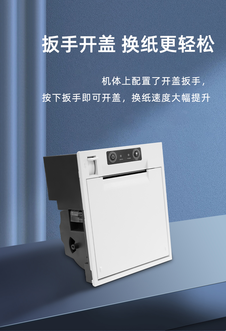 微型打印機(jī)特點(diǎn):前開(kāi)蓋維護(hù),無(wú)需拆開(kāi)終端設(shè)備就可實(shí)現(xiàn)換紙和維護(hù)