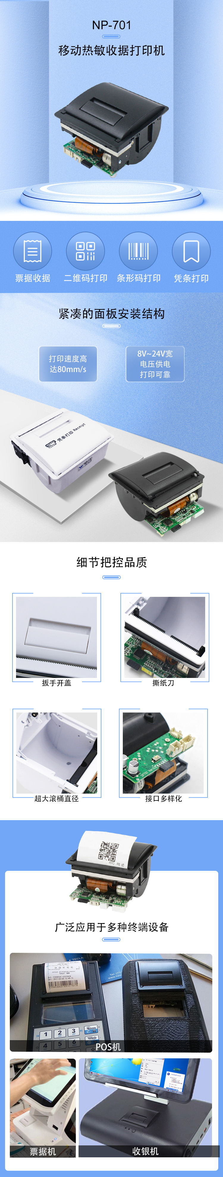 美松MASUNG自主研發(fā)58mm熱敏打印機 1.接口形式:串口(Ver02版本只支持TTL,Ver03版本支持RS232/TTL),USB 口 2.驅(qū)動支持: XP /Win7 /WIN8 (32bit 和 64bit)/win 10 3.打印速度:最高可達(dá)80mm/s 4.具有噪聲低、可靠性強,結(jié)構(gòu)小巧、操作簡單、易裝紙等特點 5.8V~24V寬電壓供電 6.弧面式設(shè)計確保紙卷大,嵌入體積小 7.醫(yī)療、檢測、零售等行業(yè)的自助終端打印設(shè)備