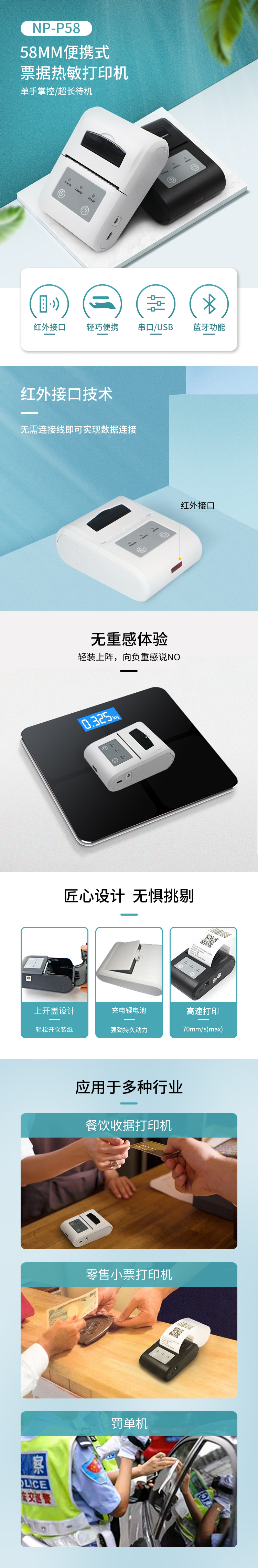 1.支持多種一維條形碼&二維碼功能的打印 2.支持GB18030漢字庫(kù),可高速打印漢字,位圖打印 3.特殊支持紅外紅外(雅培紅外協(xié)議)接口 4.單手掌控,便攜性極好