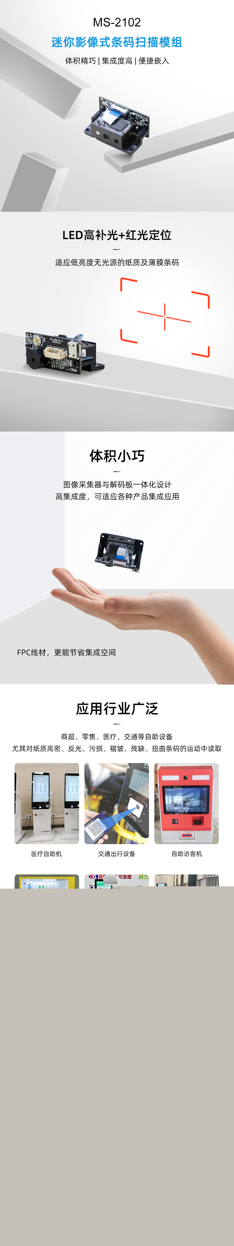 帶補(bǔ)光燈和指示燈,對(duì)紙質(zhì)條碼掃描效果好 采用廣角鏡頭,掃碼可以貼的更近,符合貼近掃描習(xí)慣 心跳監(jiān)測(cè)在線狀態(tài) 兼容市面上常見(jiàn)模組固定孔 選配轉(zhuǎn)接板可端子線連接RS232,TTL3.3V,TTL5V,USB,USB虛擬串口