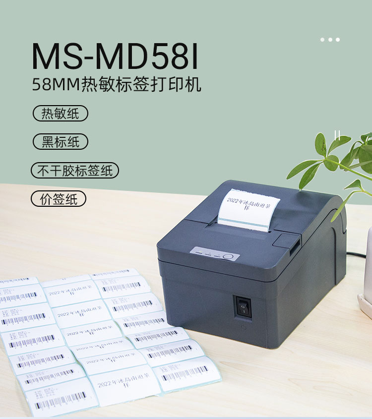 1、零售店鋪和商場超市的標(biāo)簽:對于零售店鋪和商場超市,水果店等,經(jīng)常會出現(xiàn)商品價格的變動和商品的更新,所以就需要打印貨物標(biāo)簽以更好的管理,MS-MD58I這一款桌面式的熱敏標(biāo)簽打印機,打印所需的耗材價格較低,在標(biāo)簽的更新中具有顯著的優(yōu)勢,MS-MD58I在打印的方面也可完美用于打印商品標(biāo)簽、價格標(biāo)簽和促銷標(biāo)簽等。其快速、準(zhǔn)確的打印功能也能輕松支持大量商品的快速上架和更新,從而提升店鋪運營效率和顧客購物體驗。