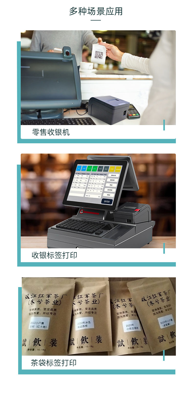 可以打印熱敏票據(jù)紙和熱敏不干膠紙,適合市面上絕大多數(shù)的打印需求。 支持條碼打印、標(biāo)簽打印、不干膠打印、熱敏紙打印、收銀紙打印、價簽打印等多種打印方式。 可裝入50mm直徑的紙卷,具有USB、Wiff、串口、并口、藍牙等通訊方式可選, 58mm桌面式熱敏不干膠標(biāo)簽打印機,可適用于多種場合,進行標(biāo)簽打印,商超零售貨架標(biāo)簽,水果店鋪價格標(biāo)簽,購物稱重標(biāo)簽,醫(yī)療標(biāo)簽。