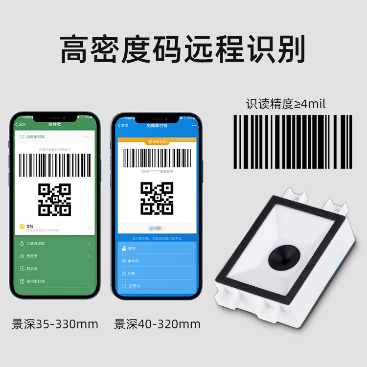 兼具一維/二維碼;紙質(zhì)和手機碼掃描 超薄19mm,窗口4cm*3cm更宜集成 漫反射補光 高集成度,集成蜂鳴器,補光燈,端子接口在一塊板上,更穩(wěn)定 3.6-6V寬電壓設(shè)計,ESD保護電路 OCR身份證識讀(選配)