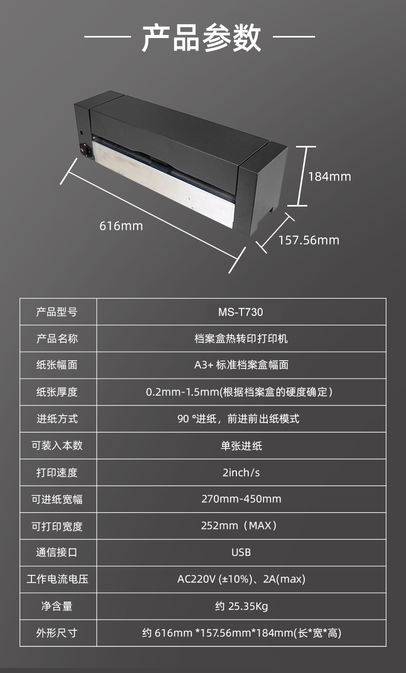 美松MASUNG自主研發(fā)A3+標(biāo)準(zhǔn)檔案盒封面打印機(jī) 1.專(zhuān)業(yè)打印牛皮紙,證件內(nèi)頁(yè),無(wú)酸紙檔案盒 2.對(duì)接API,EXCEL,ERP等數(shù)據(jù)庫(kù)專(zhuān)業(yè)的編輯軟件,自定義打印 3.USB連接操作簡(jiǎn)單,耗材成本低,長(zhǎng)久保存 4.智能打印,整齊規(guī)范化,助力智慧辦公