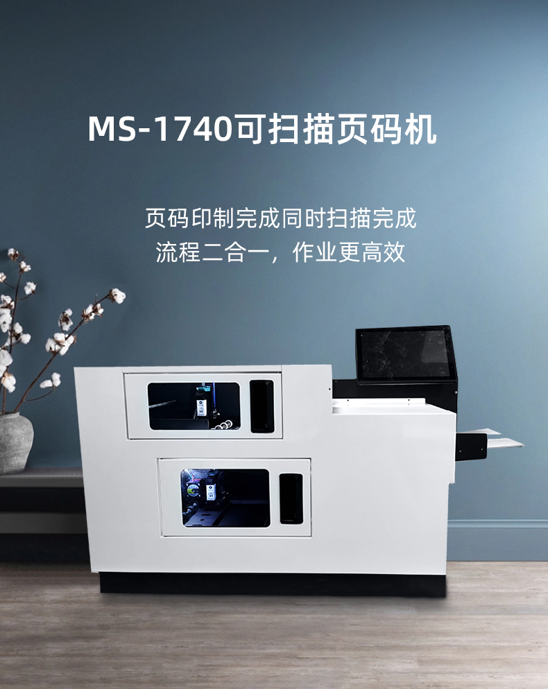 MS-1740可掃描頁碼機(jī) 頁碼印制完成同時(shí)掃描完成流程二合一,作業(yè)更高效 MS-T740頁碼機(jī) 替代人工打碼,內(nèi)置高分辨率噴墨機(jī),高速,清晰,不沾墨 可觸屏的電腦具有高速處理器,DDR3L 8GB內(nèi)存、SSD128G硬盤、電容式高亮觸摸屏、預(yù)留網(wǎng)口、USB、COM口等 光盤存儲(chǔ)刻錄專業(yè)處理軟件 處理過的文件通過內(nèi)置軟件可輕松制成光盤或存儲(chǔ)至指定位置。 Ai智能識(shí)別