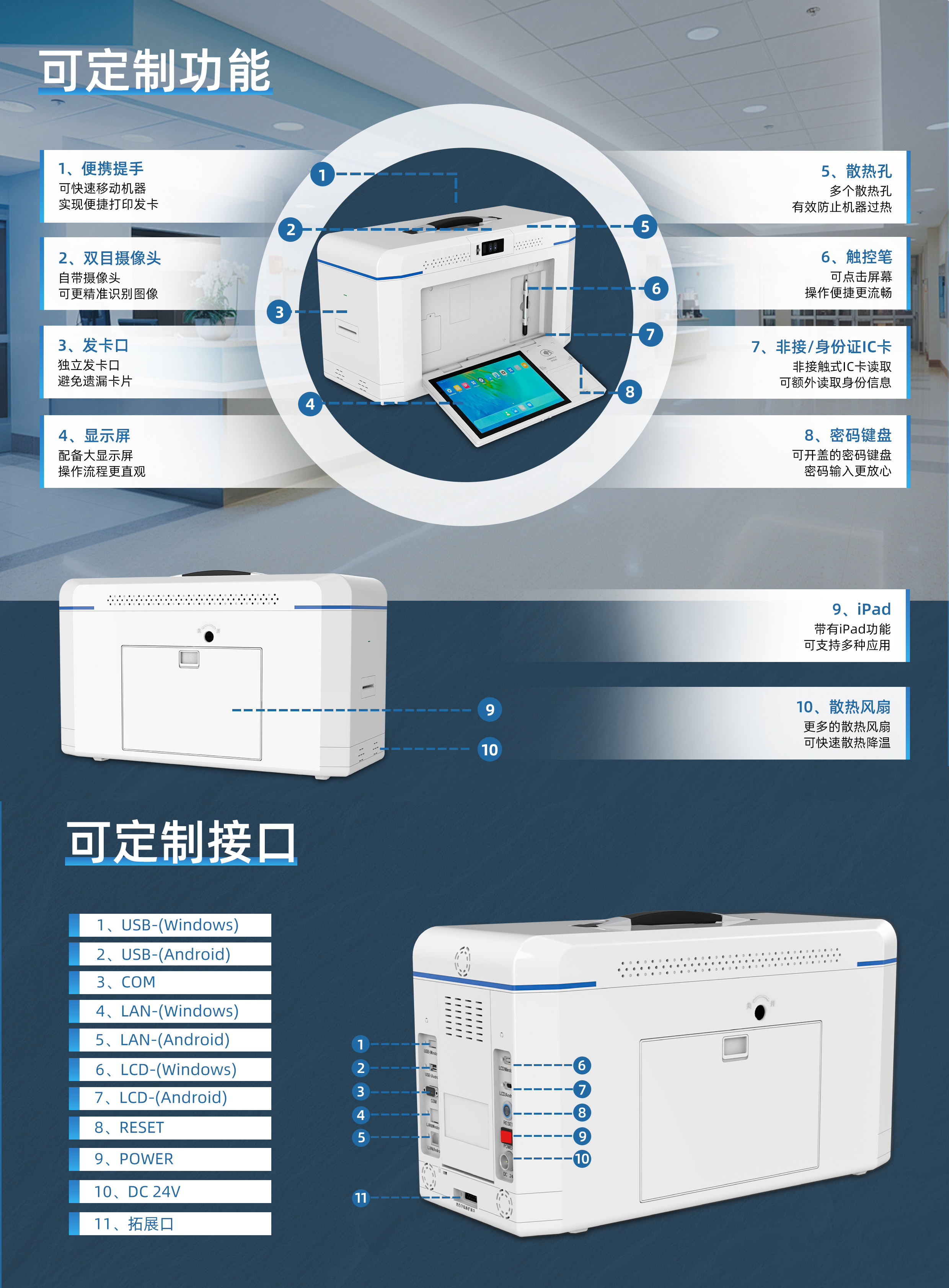 MS-ACT812是一款可移動(dòng)的便攜發(fā)卡機(jī),具有多種功能選擇,帶有雙目攝像頭和單獨(dú)的顯示屏,同時(shí)具有觸控筆可用于點(diǎn)擊屏幕,此外還有iPad功能可支持多種應(yīng)用,可讀取非接觸IC卡和身份證和身份識(shí)別卡,帶有密碼鍵盤可用于輸入密碼