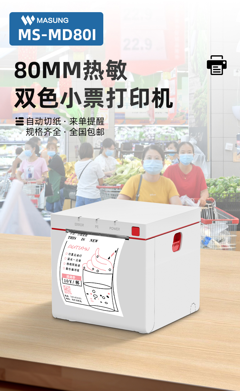 MD80I是一款高顏值的可桌面也可壁掛的雙色熱敏票據(jù)打印機(jī)。MD80I外形四四方方的,圓潤一體設(shè)計(jì)、簡于外,精于內(nèi)。適用于零售商超、中小電商、倉儲物管、影院娛樂等行業(yè)領(lǐng)域,更適合新零售、跨境電商、影院行業(yè)